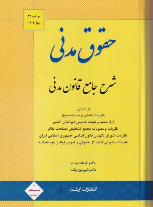کتاب حقوق مدنی شرح جامع قانون مدنی یکی از منابع مهم و کاربردی در حوزه حقوق مدنی است که با تحلیل دقیق مواد قانون مدنی ایران، مفاهیم حقوقی را به صورت جامع و قابل فهم ارائه می کند. این کتاب برای دانشجویان، وکلا، کارآموزان و علاقه مندان به حقوق مدنی طراحی شده است و هدف آن تسهیل یادگیری و درک قوانین پیچیده حقوق مدنی می باشد.
