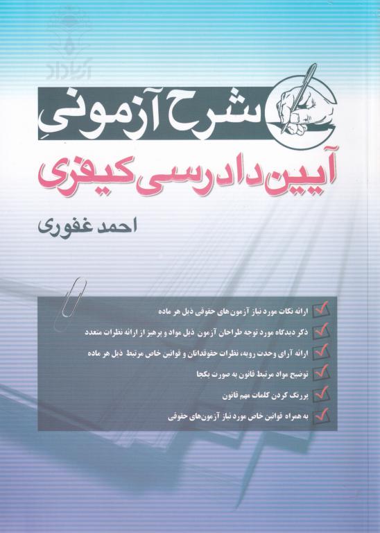 کتاب “شرح آزمونی آیین دادرسی کیفری” نوشته احمد غفوری یکی از منابع معتبر و ضروری برای کسانی است که به دنبال درک عمیق تری از مباحث حقوقی در حوزه آیین دادرسی کیفری هستند. این اثر، با نگاهی جامع و دقیق به قوانین و رویه های موجود در این حوزه، برای دانشجویان حقوق، وکلا و حقوقدانان به عنوان یک کتاب مرجع بسیار ارزشمند محسوب می شود.
